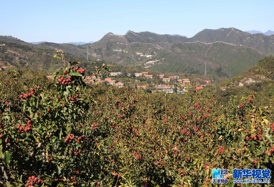 10月15日,蓟县官庄镇梁后庄村红果喜获丰收,红彤彤的红果映红整个山村。