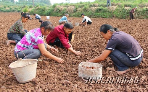 连日来,在李市镇黄桷村五社圣灯山的地里,村民们忙着埋桃树种子育苗。圣灯山一带较为偏僻,这些年许多青壮年劳动力外出务工,导致百余亩土地几乎荒芜。为盘活这些土地,增加村民收入,该村两委会结合实际,鼓励村民培育桃树苗,既可销售苗子又可搞乡村旅游。图为日前,村民们正在地里埋桃树种子。