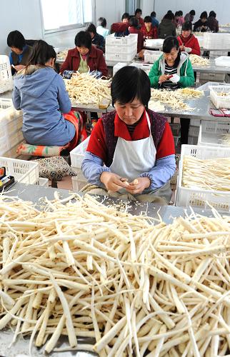初冬时节,山东省淄博市沂源县南鲁山镇的万亩桔梗迎来收获期,当地农民抢抓晴好天气忙着收获、加工。沂源县南鲁山镇是江北主要的桔梗产地之一,这里的桔梗丝、桔梗条等桔梗干鲜品不仅销往全国各地,同时还出口日本、韩国等国家和地区,每年外销成品桔梗达8000余吨,桔梗产业成为当地农民增收的重要来源。