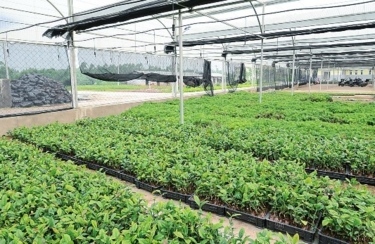 位于福绵区新桥镇被霞村的广西国有六万林场珍稀花卉种苗繁育示范基地,总投资1924万元,占地面积582亩,拥有配套完善的办公楼和组培楼,现代化育苗大棚6000多平方米。基地现有专业技术人员20人,生产工人100多人,铁皮石斛组培瓶苗500万瓶,年产铁皮石斛驯化苗1亿株。目前,该基地繁育的珍稀花卉种苗主要有金花茶、降香黄檀(黄花梨)、红椎等。