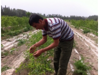 图为努尔巴克乡病虫害监测点干部进行枣树病虫为害信息采集