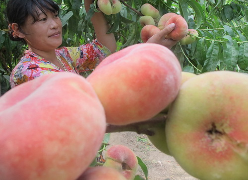 8月10日,兵团第八师143团9连玉平蟠桃园女主人正忙着为客户采摘蟠桃,当天采摘的500公斤蟠桃,以每公斤15元的价格,被乌鲁木齐、石河子、克拉玛依等地的客户买走,拉开了这个团万亩中熟蟠桃上市的唯幕。