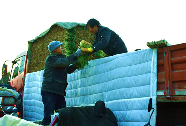 冬至时节一片天寒地冻的景象,但山丹镇的韭菜大棚里却是令一番天地,丰收的喜悦扑面而来。一望无际的田野里,塑料大棚像“长龙”一样整齐排列,掀开大棚帘子,绿油油的韭菜进入视线,蓬勃茂盛的韭菜碧绿葱翠。菜农们正忙着将收割的新鲜韭菜捆绑装运,脸上洋溢着丰收的喜悦。