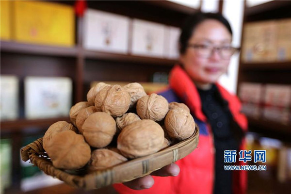 2016年1月26日,工作人员正在推出(展示)风味独特的东岗薄皮核桃。