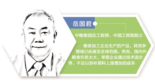 岳国君:粮食产量增加是好事,对于粮食加工企业来说,期待增加粮食加工品种和粮食加工总量。近几年国家连续执行托市收购,提高了粮食收购价水平,企业用粮成本有所增加。在全球经济一体化的情况下,粮食加工企业生产的产品,其竞争领域已拓展至全球范围。然而,国内外粮食价差太大,单靠企业通过技术进步、节能减排降低成本,不足以弥补原料上涨增加的成本。加工行业是一种低利润的行业,国家应该从顶层设计上制定可操作性强的战略。同时,藏粮于企业,是对粮食安全的保证。粮食加工企业要不断进行技术创新,增加产品品种,不断延长产业链条,发展精深加工,提高粮食附加值,从而提高企业对原料价格波动影响的控制能力。