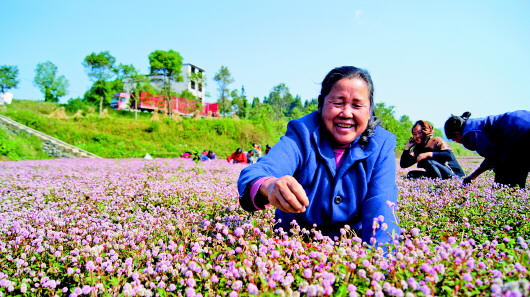 喜悦的笑容挂在脸上,从心底里唱出的山歌让人醉:“石旮旯种金银花,一家老小全靠它,又好看来又找钱,金银花变金娃娃。”