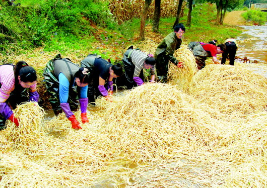 6月7日,记者来到喀斯特发育典型的义乌试验区德卧镇大井村,这是收获的季节,漫山的金银花让村民们忙得不亦乐乎。