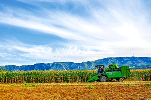 玉米联合收获机在宜阳县莲庄镇四岭村进行玉米机收和秸秆还田作业。该县出台多项优惠政策,加大补贴力度,推广大型农机具的使用以及秸秆还田、保护性耕作等技术,快速推进农业现代化进程。截至目前,今年该县已投放农机补贴资金1200余万元。