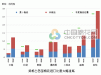 美棉对全球其他地区的出口同比也增长了80%,而这些地区的进口预测同比是持平的。因此,美棉占全球多数地区的棉花进口比重将扩大。