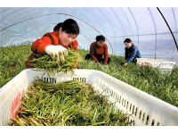 在成品包装仓库,一群妇女正在分拣草莓。“这里活儿不重,一天工资六七十块,田租给陈老板种,每亩租金还有900块,蛮知足的。”该镇凤凰村村民吴梅开心地说。