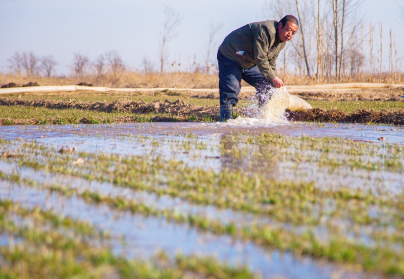 2月24日,河北省武邑县西张桥村农民在灌溉冬小麦。