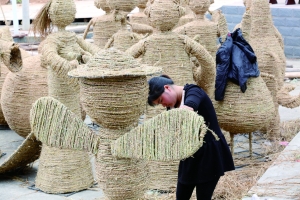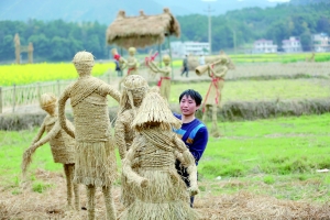 记者看到,一个个多角度立体化的稻草原创造型,让即将消失的手工技艺得以重现,独特的风景营造了浓厚的传统农耕文化氛围。不管是口衔稻草的“耕牛”,还是可以推动的“独轮车”;不管是并行排列的酒坛,还是“双人轿”“稻草龙”,都惟妙惟肖地诠释了农耕文化的魅力。
