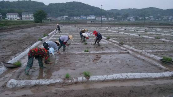 今年是慈利县承担再生稻品种筛选试验的第二年,该试验于3月28日播种,播种前用强氯精严格消毒、硬盘育秧,通过总结去年试验成功经验,选取交通便利,土壤肥力均匀且中等偏上,排灌方便的田块5.6亩,亩施基肥35kg,随机区组排列,按肥料试验规范做好小区,开沟筑埂覆膜,小区面积0.02亩,3次重复,各小区严格按要求单灌单排。4月24日按6寸×6寸划行标准移栽,每蔸插2--3粒谷秧,周边设保护行5行。5月5日每个小区撒施尿素4两做分蘖肥。