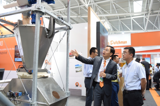 大荷兰人的展厅设置在S1馆SD01展台,向观众展示了最前沿的的家禽、家畜养殖设备。刚一开馆,就有参观者络绎不绝地来到展台观看介绍及咨询设备。此次大荷兰人展示的产品有干料输送系统、OptiPlate粪便处理系统等传统和其他创新产品。