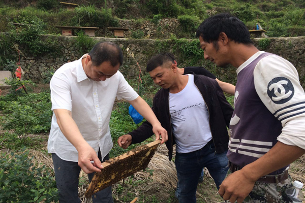 孙永夫指出,该村森林覆盖率高,有多样性的气候与植被,野生花卉资源丰富,为蜜蜂养殖提供了得天独厚的优势,建议其应因地制宜将自己所在的优势发挥好,依靠青山绿水的生态环境打造好生态蜂场。