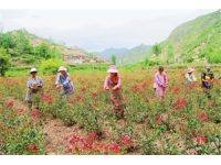 目前,当地参与玫瑰种植的农户主要有两类:有劳力、能管理的农户多数在企业指导下自栽、自采,采收的玫瑰花交公司统一收购烘烤、加工,省去了自己寻找销路的烦恼;建档立卡贫困户和农村空巢老人,则大多选择直接到公司上班打工,固定工每月可领取2240元工资,打零工的每天8小时能领取65元工资,8小时外愿意加班的还有加班费。石羊镇副镇长王光伟介绍,从去年至今,全镇已有185户建档立卡贫困户在企业从事金边玫瑰种植、管理、采摘工作,走上了脱贫致富之路。企业负责人车有亮透露:“去年,公司共兑付给农民土地流转金11万元,支付农民交花款380万元和采花工资60万元,真正实现了花农和企业共同发展、合作共赢。”