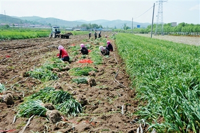 收割、挑拣、扎捆、清洗、装车……6月21日,在西吉县绿发蔬菜种植合作社种植基地,到处一片繁忙景象,外地前来收购蒜苗的客商正等着装车拉货。