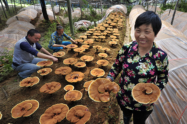 地处皖南深山的安徽省旌德县,近年来将灵芝产业打造成山区脱贫致富的主导产业,发挥龙头企业的带动作用,农民以资源入股等方式进行灵芝种植。目前,旌德县灵芝种植面积已超过3000亩,带动1300多名农民就业。新华社记者 王雷 摄