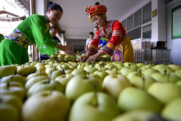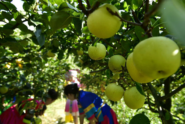 初秋时节,湖北省恩施土家族苗族自治州宣恩县的特色水果“黄金梨”进入采收期。按照标准化、有机化操作规程种植的“黄金梨”,不仅通过农村电商、微商“走南闯北”,更是旅客们体验山区生态农业的乐园。农电融合、农旅融合的黄金梨种植,已成为当地农民精准脱贫的有力推手。新华社发(宋文 摄)