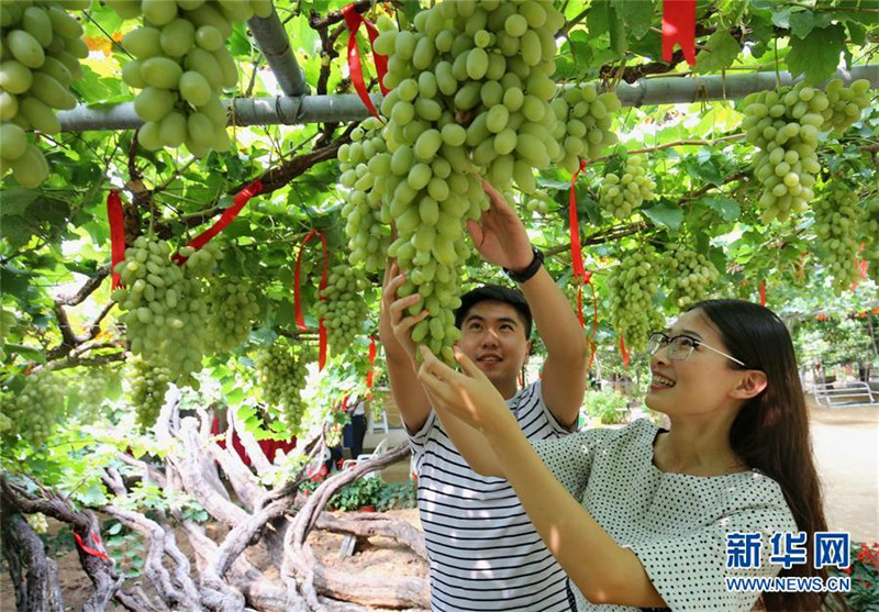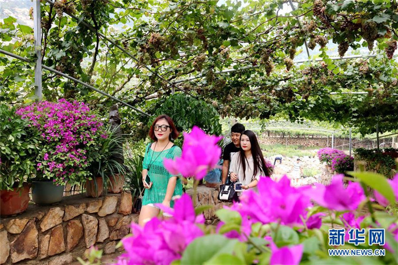 河北省昌黎县葡萄沟是该县栽植鲜食葡萄的重要基地。近年来,当地1212引导葡萄沟内的群众依托区位优势,充分利用山地和空间资源,在房前屋后、街旁院内、河畔沟壑等地栽植葡萄,取得良好的经济效益。据介绍,目前昌黎县葡萄沟区域鲜食葡萄面积达1万多亩,仅种葡萄一项,村民年人均收入达1万元。新华社记者 杨世尧 摄