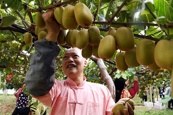 苍溪县地处四川盆地北缘,秦巴山脉南麓,是秦巴山区连片扶贫工作重点县。近年来,当地把发展红心猕猴桃产业作为贫困山区带动群众脱贫致富的突破口。据统计,截至2016年底,当地累计种植面积达35.2万亩,全面覆盖214个建档立卡贫困村,带动贫困户年人均增收超过5500元。新华社记者 范培珅 摄