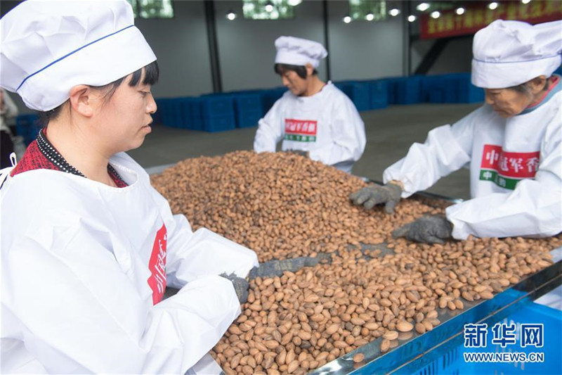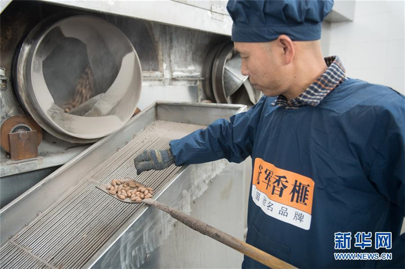 11月7日,诸暨市一家香榧企业的员工在生产线上炒制香榧。