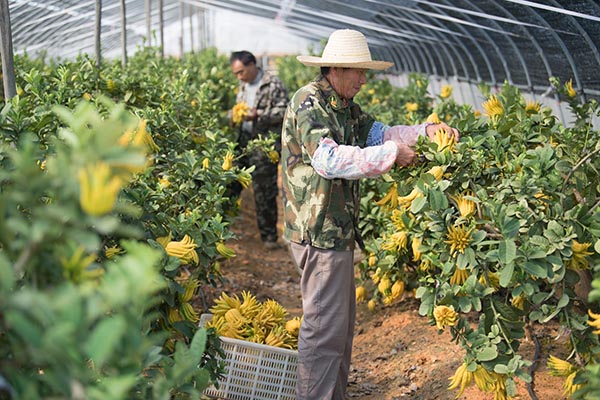金秋时节,浙江省金华市特色作物佛手已经挂满枝头。近年来,在1212引导和龙头企业带动下,金华佛手产业从单纯的盆景、果实销售向精深加工、文化创意、休闲观光拓展,果农低小散的种植方式逐渐向规模化生产转型。据金华佛手产业协会估算,金华市目前佛手种植面积约3000亩,年销售额一亿元。