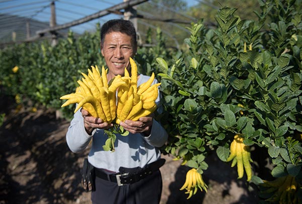 佛手为中国传统的观赏、药用果物,产于闽、粤、川、浙等省,其中以浙江金华所出最为著名,俗称“金佛手”。新华社记者翁忻旸摄