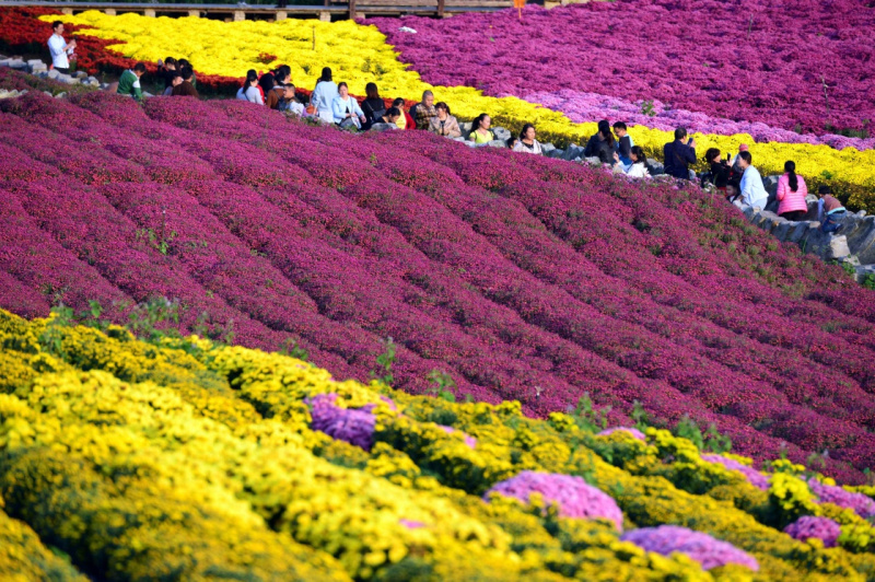 金秋时节,贵州省黔东南苗族侗族自治州麻江县宣威镇药谷江村种植的400余亩各色菊花竞相绽放,吸引众多游客前来赏花观光。新华社发(杨文斌 摄)