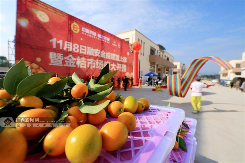 11月8日,融安县中国供销·桂北农产品电商园金桔开市现场。