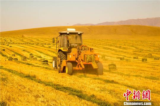连日来,地处河西走廊中部,祁连山北麓的甘肃山丹马场30万亩燕麦草进入大面积收割阶段。预计今年的燕麦草将达到30万吨。燕麦草又叫铃铛麦,原产欧洲和地中海一带,现中国各地亦有种植,品质以青藏高原种植为佳。