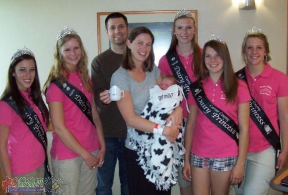 图为奶牛公主们和小婴儿及其父母在Ridgeview医院的合影
