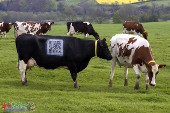 奶牛小姐身体一侧的这个二维码,通过手机扫描,我们便可直接链接到她的博客(追溯她的日常生活)。奶牛小姐Shamrock所产的奶主要用于生产斯提耳顿干酪(世界三大蓝纹奶酪之一)。