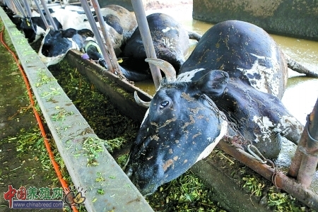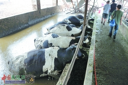 “突然听到奶牛一阵嚎叫,几秒钟的时间,就看着奶牛扑扑通通栽倒在地。”工人卢先生说,事情发生在昨天清晨5时40分左右,几名工人给奶牛挤奶、喂草料后,刚刚走出牛棚,就发生了这样的事情。“要是我们晚出来一会儿,也凶多吉少了。”回想早上经历的惊险一幕,卢先生仍然心有余悸。