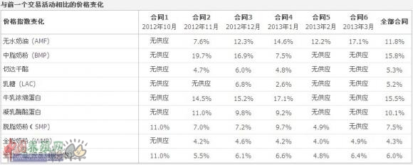 恒天然乳品拍卖价格增长6%