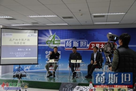 10月25日上午,荷斯坦卫星大讲堂在中央农业广播电视学校北京演播室进行第二次试播,ABS中国技术服务经理王连江和三元绿荷中以牧场场长刘海分别就“新产牛管理要点”和“围产期奶牛管理经验”作了专题讲座。全国25个省的200个规模牧场几千名养牛人在牧场收看了卫星直播。