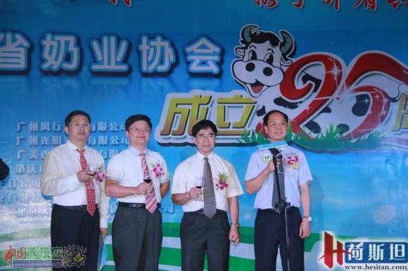 来自省内外的各级领导和奶业相关人士共300余人参加了庆典活动。中国奶业协会秘书长谷继承先生和广东省农业厅副厅长郑惠典先生专程到会致辞,充分肯定了,近年来,广东省在奶业安全和规模化经营上所取得的巨大成果,并祝本次活动圆满召开。广东省奶业协会会长陈三友先生也代表协会上台致辞,衷心地感谢各级政府部门和兄弟奶协对广东奶业的大力支持,并表示要带领广东奶协,携手再创广东奶业的新辉煌。