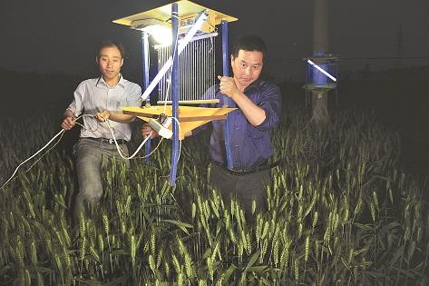 5月8日,记者跟随宿州市墉桥区时村镇植保协会科技人员,用镜头记录了他们用高效灭虫灯在麦田灭虫的经过。眼下,小麦已进入抽穗扬花期,为了做好病虫害防治和中后期田管,该镇在万亩小麦良种田里安装了500盏高效灭虫灯,不但减少了化学农药使用量,降低了农业生产成本,而且实现了农作物绿色无害化生长。据了解,省农委今年出台了防治规程,强调各地要采取生态控制、生物防治与化学防治相结合,以确保小麦丰收。