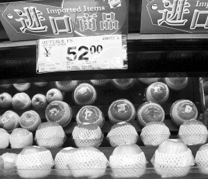 52元一个的进口“红富士”。本报记者丁开 实习生王振权 摄