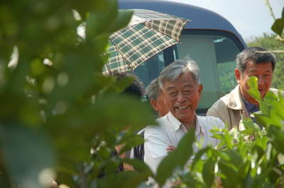 褚时健:我们果园面积5平方公里,占地2400亩,共有果树340000棵。目前,果园农户210人,公司管理人员40人,临时工100余人,整个加起来近400人。来年我们还要换品种,严格要求达到高质量,所以我们的目标是控制在20万棵之内。