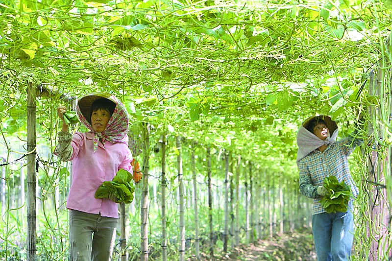 生姜、苦瓜立体栽培法大大提高经济效益。 赵梓 摄