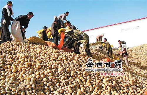 民乐县在荒漠沙化地区建成马铃薯现代化种植示范基地,积极探索风沙治理与经济开发相结合的有效途径,今年科学种植的9000亩优质大西洋马铃薯喜获丰收。