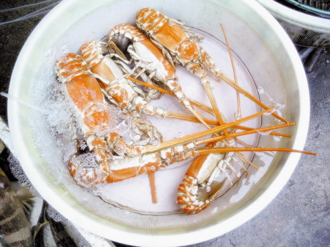 记者观察到,这种龙虾的须很坚硬,如同剪刀,而其他品种龙虾的须是从粗到细且弯曲的,不过这种龙虾因为稀罕,因此大部分是野生的,价格也不贵,目前是每公斤30元。