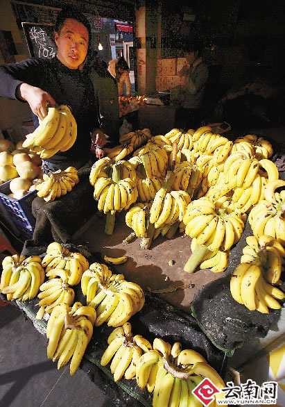 “我家一直以来卖的都是广西香蕉,市场里其他家卖的不是广西的就是海南的香蕉。”昆明市篆新综合农贸市场水果商张老板告诉记者。金马正昌果品市场相关负责人介绍,3年前昆明市内各大水果市场的经销商都不认识版纳香蕉,市场里卖得都是外省货。近一两年来,由于云南省扩大了香蕉种植面积,版纳香蕉才有了点名气。据了解,云南产区今年是个丰收年,但由于香蕉种植面积较小,热带地区所产的香蕉在当地就能销售一空,目前昆明市场上也难见“本地货”。记者从农业部门了解到,广西近两年的香蕉种植面积在迅速膨胀,今年已高达100万亩,比去年增加了40万亩。云南产区今年也增加了10万亩,达到40万亩。