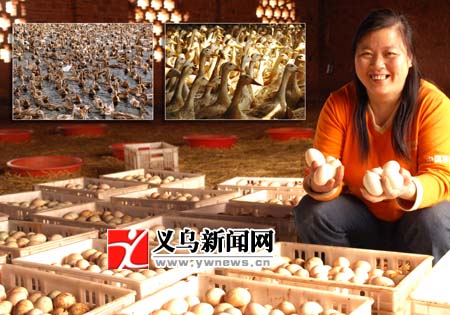 ¡¡¡¡½ñÄê46ËêµÄÒåͤǰÎÝ´å´åÃñÍõ»ÝÏ㣬1995Äê´´°ìÁËÒåÎÚÊÐÒåͤÕò»ÝÏãÑøÖ³³¡£¬×¨Òµ´Óʵ°Ñ¼ËÇÑøºÍµ°Æ·¼Ó¹¤ÏúÊÛ¡£Èç½ñ£¬Íõ»ÝÏãµÄÑøÖ³³¡ÒѳÉΪʡ¼¶ÎÞ¹«º¦Å©²úÆ·»ùµØ£¬µ°Æ·Í¨¹ýũó³ÇÏúÍùÉϺ£¡¢º¼ÖÝ¡¢Äþ²¨¡¢¼ÎÐË¡¢ÎÂÖݼ°ÖܱߵĶ«Ñô¡¢Öîôߵȵأ¬²¢³ö¿Ú¶«ÄÏÑǵØÇø¡£