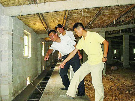 8月3日,记者到达养鸭场的时候已接近中午十二点,在刚刚建成的麻鸭养殖基地的工地上,三个大学生村官正与工人们一起施工,和水泥、铲土,平整鸭舍土地……