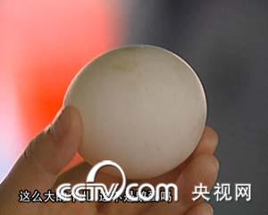 解说:您瞧,这是一个鹅蛋,这个呢是鸭绿江边的大鸭蛋,它的个头要比这个鹅蛋还大,我们再来看看普通的鸭蛋,和这大鸭蛋比起来啊,它就小得多了,那么这鸭绿江边上的鸭蛋怎么会有这么大个头呢?张苑听说,下这种鸭蛋的鸭子就很不一般,而且啊 ,他们就在鸭绿江边。