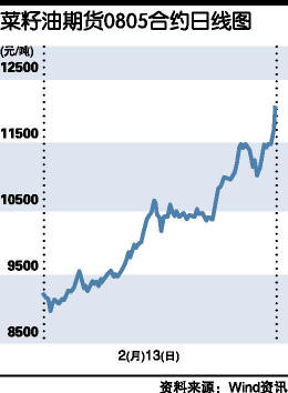 农历新年是中国最重要的传统节日之一,由于部分油厂春节前后放假停机,加重了植物油市场供给紧张的局面,对植物油价格形成了有力推动。而中国南方地区持续的降雪和低温天气,对油菜籽生长的不利影响可能进一步扩大,受灾面积较市场原来估计的要大,也增加了油脂市场利多基调,刺激了投资者参与植物油期货交易的热情。