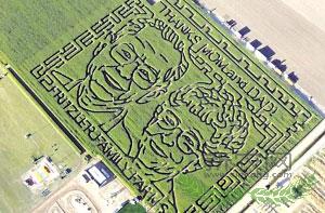 在过去9年中,埃德夫妇的儿子格兰·弗里茨勒和儿媳帕姆每年秋天都要在这块玉米田中炮制一个“迷宫”,这一玉米田迷宫总是会吸引许多游客前来参观。令人意想不到的是,为了表达对父母养育之恩的感谢,格兰夫妇今年决定在玉米田中炮制出一个父母埃德和伊琳的肖像!
