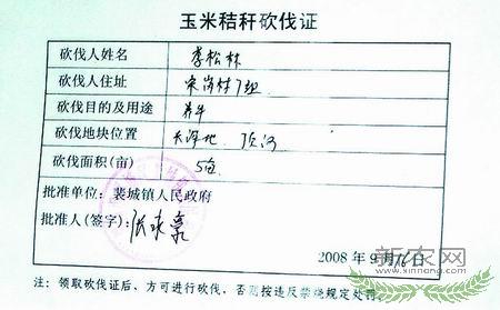 河南漯河裴城镇规定农户收玉米要办砍伐证